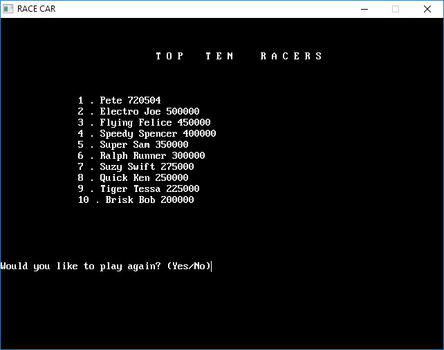 Re: Race Car Game |