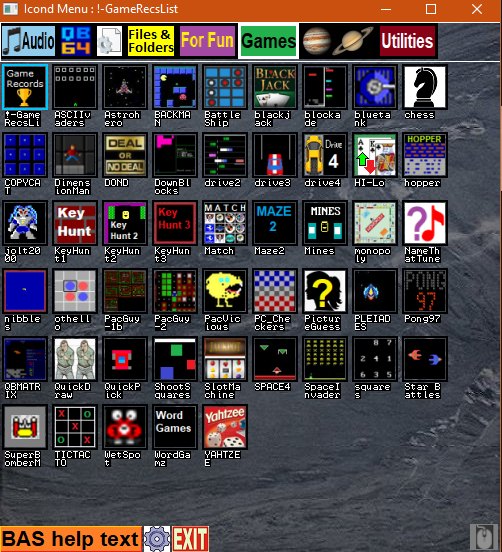 I use a menu I call an Icon Menu for running my BAS programs. Based on using icons like Windows does.