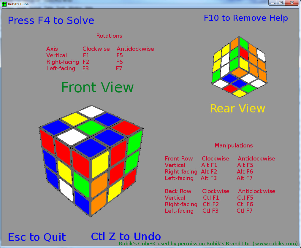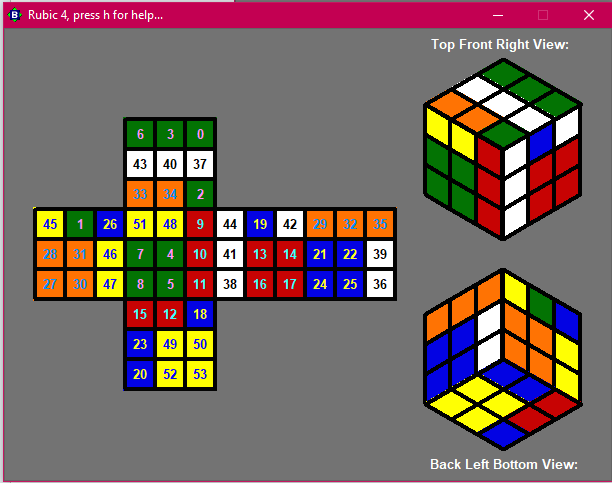 Interesting comparing your version to what I did back in May (Just Basic). I did all my turns 90 degrees clockwise with the right hand using an axis(x, y, z) + layer (1, 2, 3 top down, front to back or left to right) key presses signal. And I also solved by recording the moves and "reversing" them by turning each 3 more times clockwise which effectively eliminates the last move made. I too had no Rubik's cube to experiment with and ended making one of paper to help visualize results of moves. It was a very challenging programming problem.