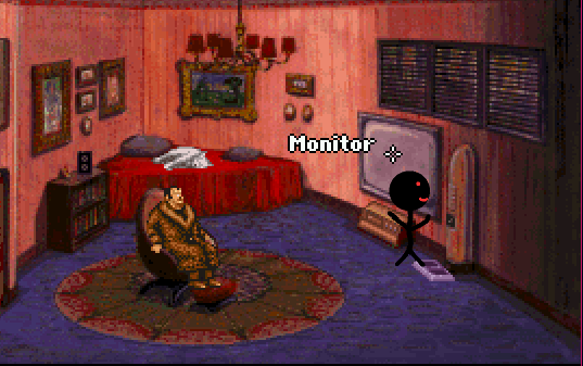 This is cool. Reminds me of Larry the Lounge Lizard and Monkey Island. Cannot wait to see it finished. Well done!