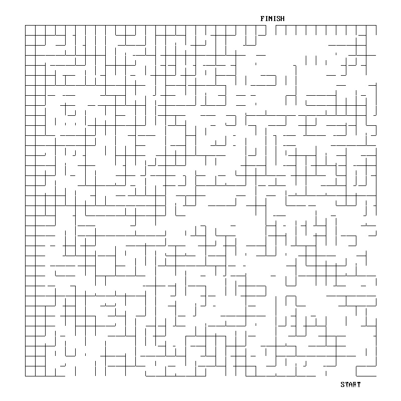 I have decided to make a more complicated path maker, with smaller blocks. Plus there's less code on this version and written a lot differently. Check it out. There's no "Start" or "Finish" words but I figured that is obvious. Sometimes there will even be 2 open Finish areas. This one determines when it's finished just when the path reaches the top. Like the other one, sometimes there's a lot of open space, sometimes a direct path, etc.
