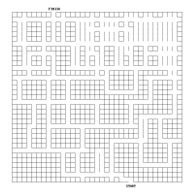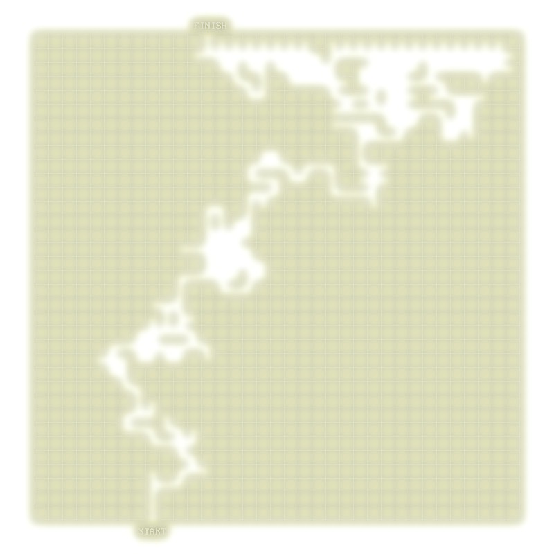 Here's one that goes almost completely directly from START to FINISH. Which would be totally cool for even adding to a computer game. This one also only needs one cave per map. I added an example picture of what this makes below.