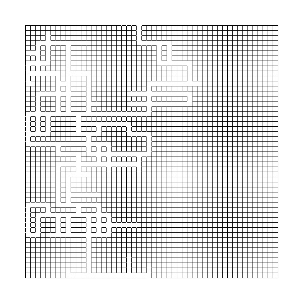 The grid is 800 x 800 with 35 x 35 cells (20 pixels x 20 pixels per cell). It is a white background with black lines so it's printer-friendly and takes up almost an entire page printing it.