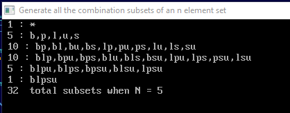1. _TITLE "Generate all the combination subsets of an n element set" ' b+ 2020-09-08