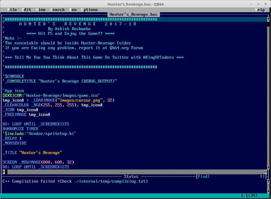 Now, latest version of game can always be downloaded from here: http://bit.ly/qb64_hr or visit https://kingashish.itch.io/hunters-revenge