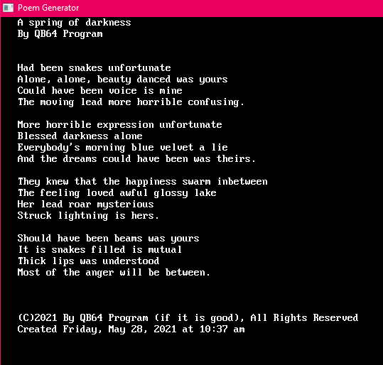 1. _TITLE "Poem Generator"