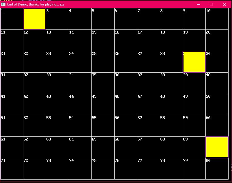 52.     _Title "Escape to quit, any other for another round... zzz"