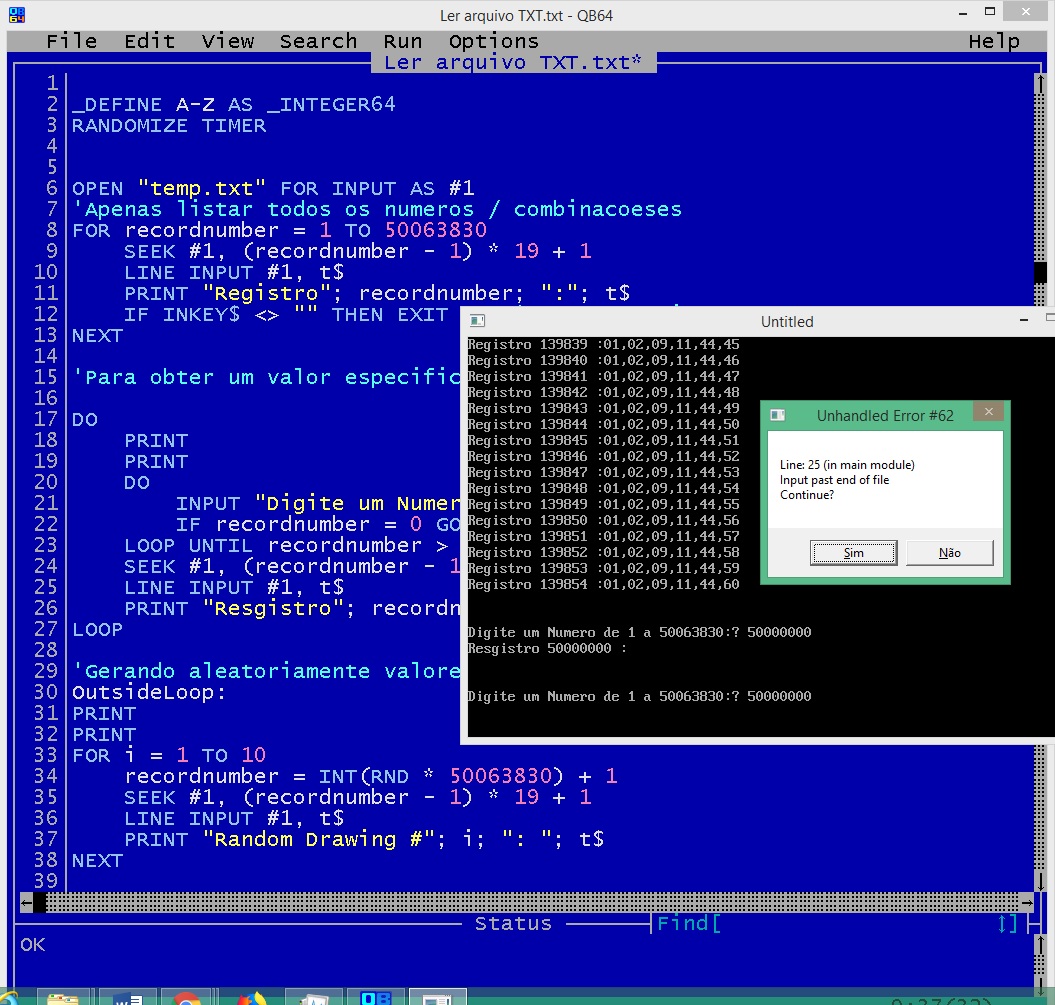 59.                         LOCATE 5, 1: PRINT "Writing Record"; RecordOn; "of 50,063,860 combinations: "; s$