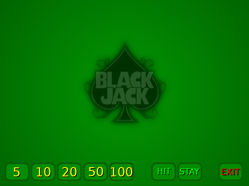 I was thinking more along the lines of how Battleships was controlled. Basically by mouse. Click on various valued 'chip' images to place a bet. Click on 'hit' to deal an extra card; Click on 'Stay" to switch to dealer. As always, esc or 'exit', to end the game.