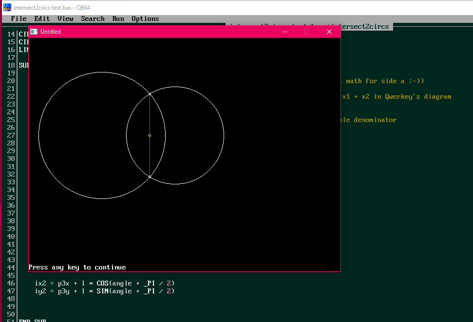 1. SCREEN 12 'intersect2circs test Qwerkey's and b+ derivation 2019-12-12
