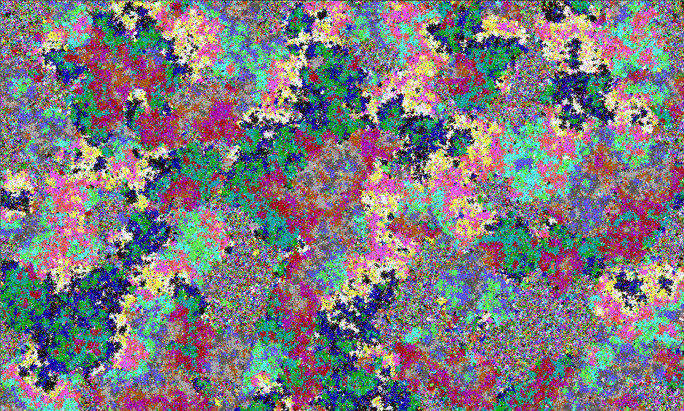 About 35 years ago I embarked on a journey of the mind quite by accident. I thought my idea would just be called Pixel Wars. Soon however, I discovered I had stumbled upon pseudo evolution and it became Evolve, instead. The idea is simple. Fill the screen with random colored pixel and apply one or more rules to those pixels. Here is the very first rule that at the time I named Pixel Wars.