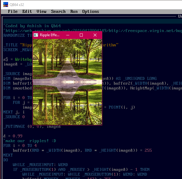 Never-the-less nice work getting rid of DATA, now this is worth a study. What is very interesting is that you still get an interference pattern when ripples run into each other! These are fake ripples and yet they appear to behave as real ones interference pattern and all! (I am speaking about the [abandoned, outdated and now likely malicious qb64 dot net website - don’t go there] version with mouse click x, y coordinated to picture).