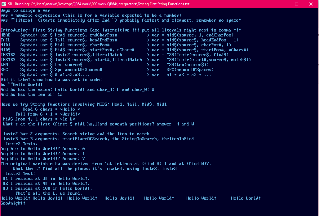 I think I have a String Functions System worked out, nothing particularly clever but now clear sight of getting SB1 code off the rack and ready for test driving. First test demo of some basically needed String Functions: