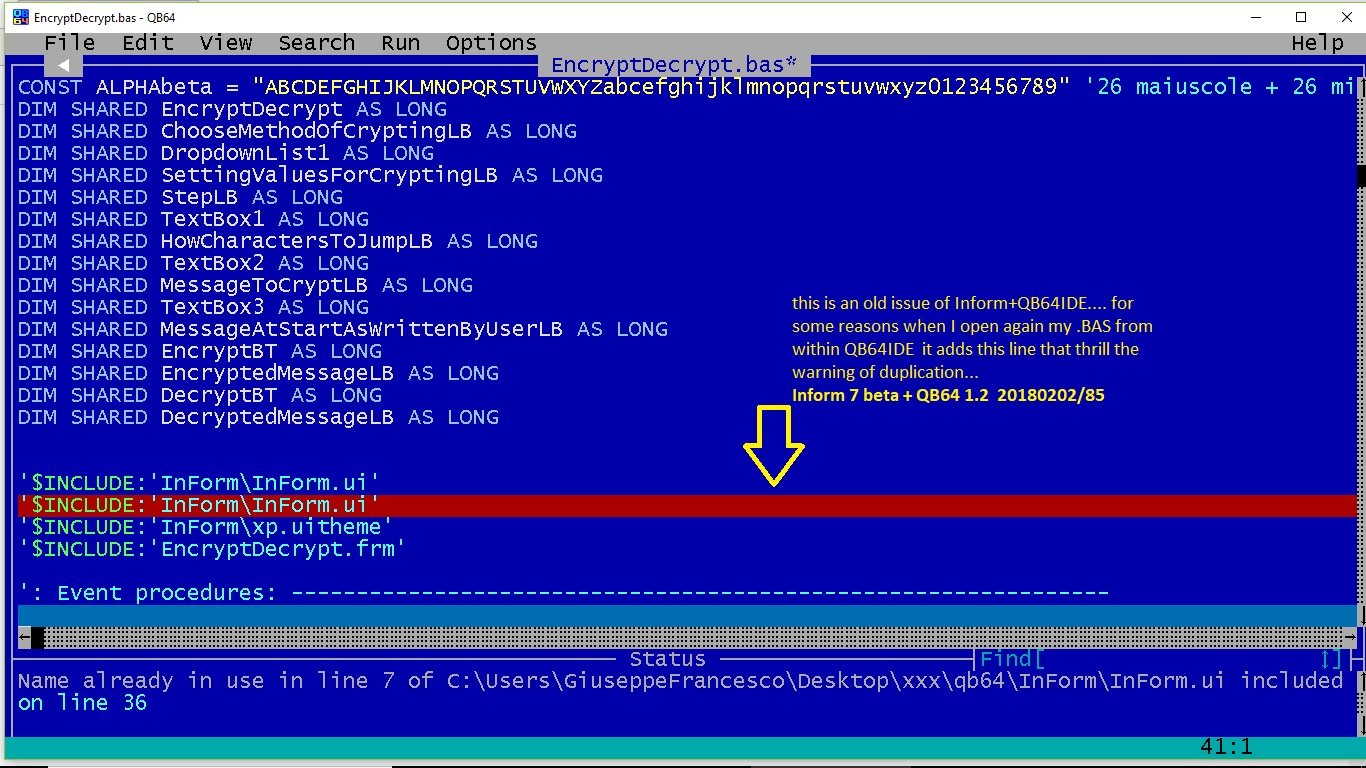 + CHR$(10) + STRING$(150, "+"), "Testing __UI_KeyHit and message box and Wiki code for _KEYHIT.", MsgBox_OkCancel