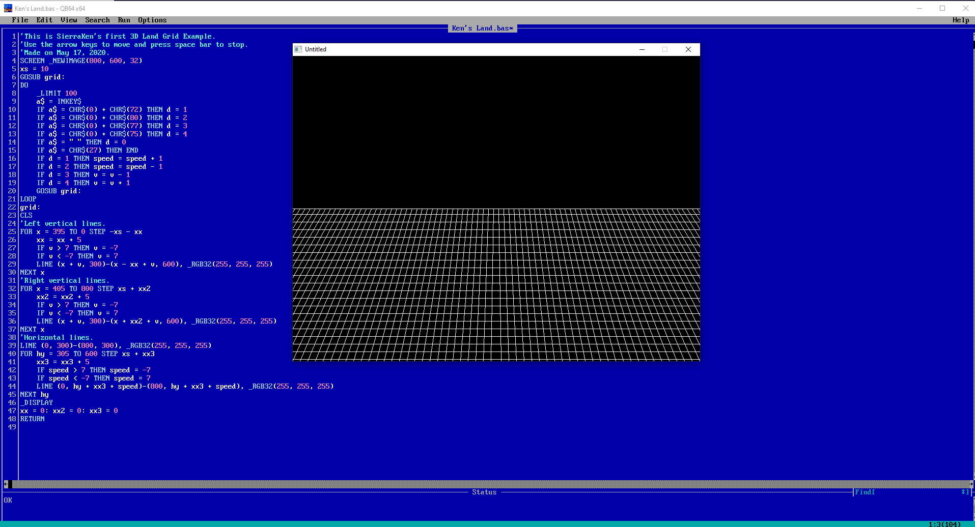 I'm not sure where I am going with mine, I don't have a plan yet. I might make a giant map using a data file or DATA lines using something with coordinates and plotting in shapes and maybe some simple designs. Not sure if am able to do it but I might look into it soon. If I can't do that, I can always make no map and just use random shapes that appear. So we'll see. :)