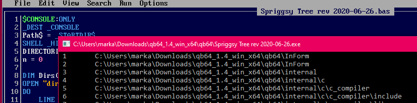 16.     IF LEFT$(Dirs(i), _INSTRREV(Dirs(i), "\") - 1) <> LEFT$(Dirs(i - 1), _INSTRREV(Dirs(i - 1), "\") - 1) THEN