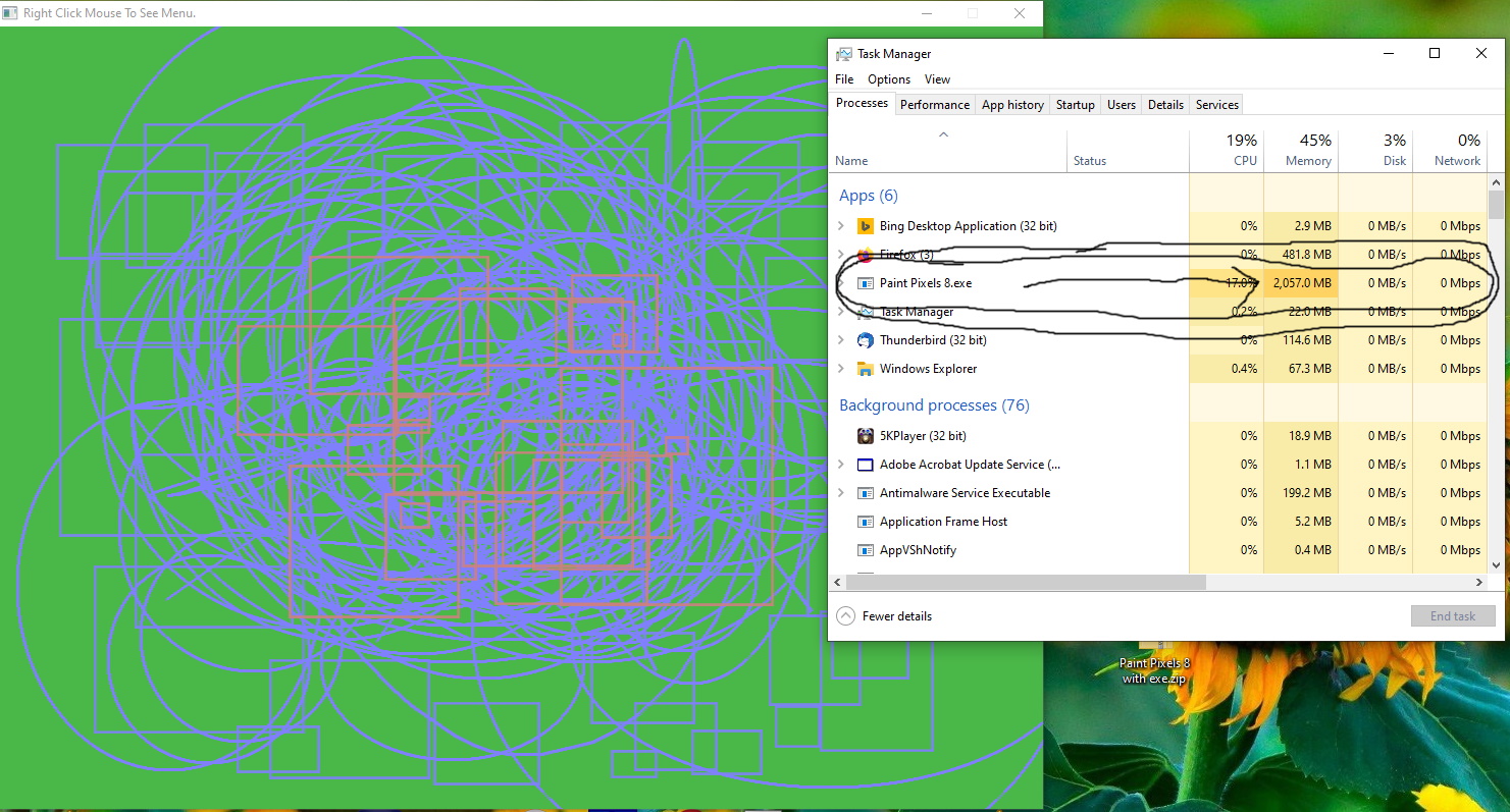 Dav, mine works fine, I didn't run your copy, I just went through all your code and added Steve's and your example to mine. I also added it to my Load area and also my Print area. Seems to work fine now. Below is another picture of proof. Earlier today I added something new to it as well: Shadow Text. When you select Text and type in what you say and what size, it then asks you if you want Shadow Text or not. If you say Y (or Yes or Yessserrreeebob... or YEESSSSSSSSSSSSSSESTWERTWERTEWRTRTG) - Gotta love LEFT$. :), then it makes a duplicate text that's a slightly different color than the text you chose, under it and to the side. Try it out! Here is the new Zip File. Oh, I also slowed the whole program down from LIMIT 1500 to LIMIT 500 because I noticed that Windows said it was "VERY HIGH" on the power usage. Now it is just "High".