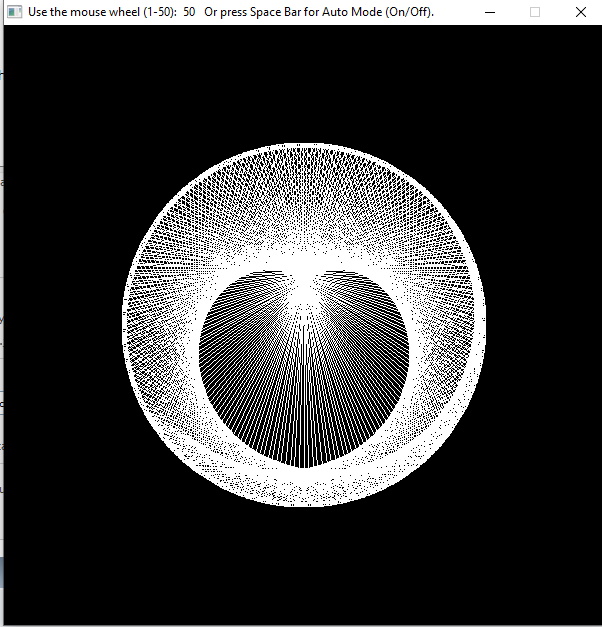 Use the mouse wheel to keep adding more lines and more connections making the circle more circular and more lines connecting the points.