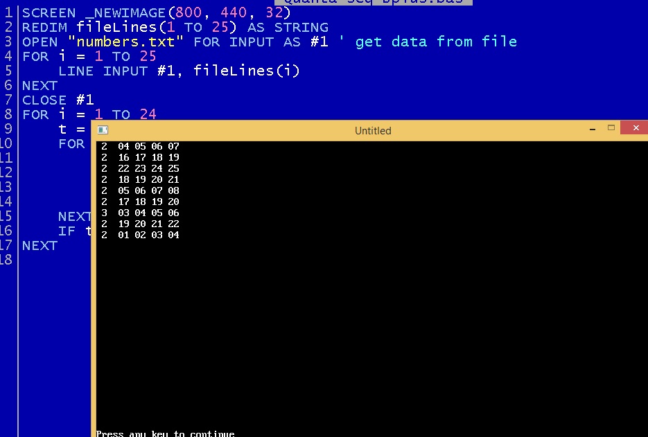 2. REDIM fileLines(1 TO 25) AS STRING, repeats(1 TO 25), repeatLines$(1 TO 25)