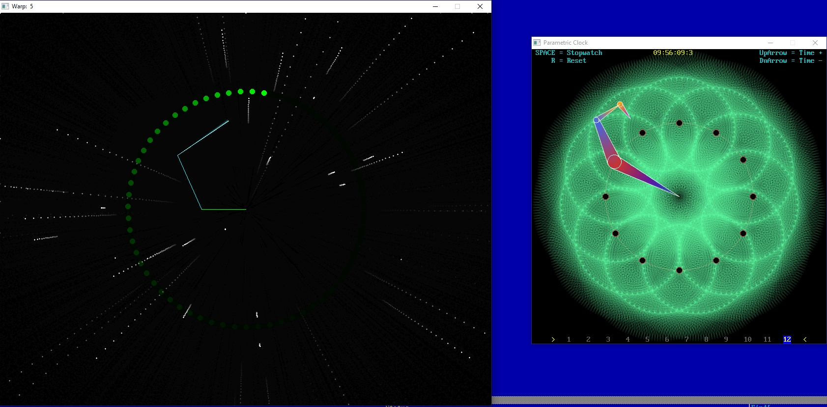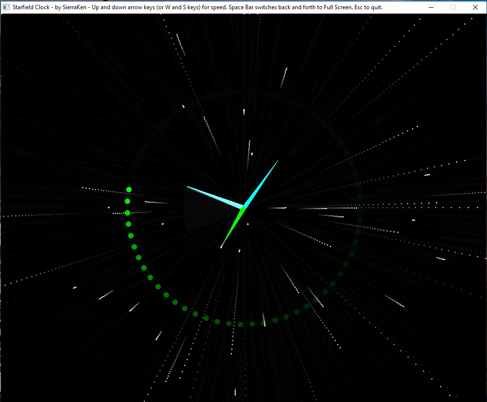 9. _TITLE "Starfield Clock - by SierraKen - Up and down arrow keys (or W and S keys) for speed. Space Bar switches back and forth to Full Screen. Esc to quit."