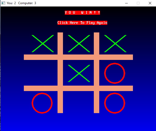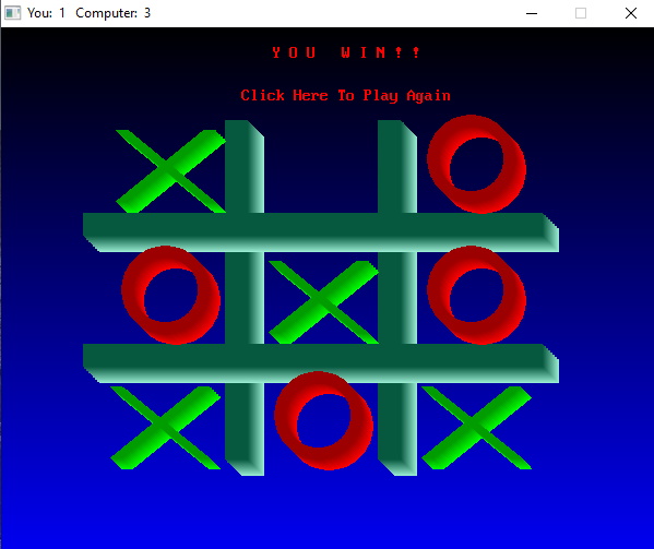 In August 2019 I made this Tic-Tac-Toe game which graphically uses X's and O's and the # grid. It also uses the mouse. What I didn't do back then is make it so the computer chooses who goes first. I think I just was overwhelmed a bit with the game and I thought it might not be possible. Well it's easier than I thought. So here it is, where the computer chooses who goes first. It adds another dynamic to the game and makes you think more. It's a 50/50 chance that you or the computer will go first. This is one of my better games I've made in my opinion. Enjoy :).