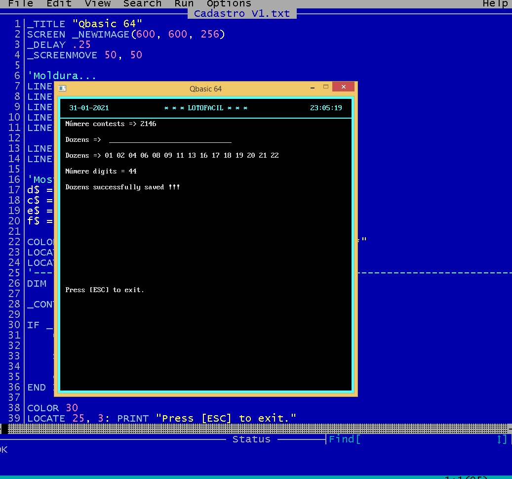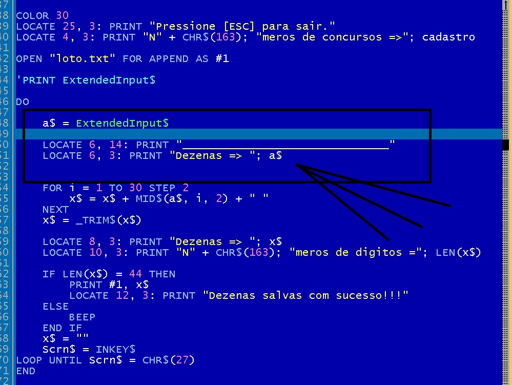 56.         LOCATE 12, 3: PRINT "Dozens successfully saved !!!"