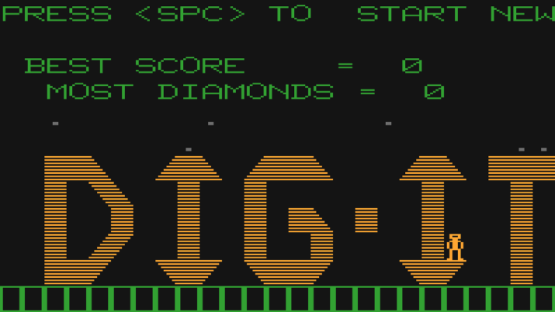 5TH September ---- Screen shot of title. has music and BIG LETTERING SCROLLING, High score Routine being worked on Moving all data out of main program into a data file.