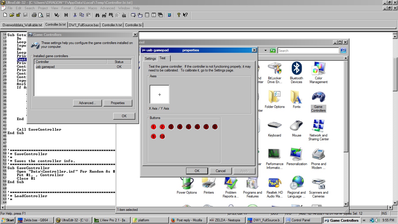 second, my controller uses buttons 1,2,9,10 and your code only looks for 0,4,8.