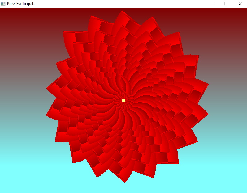 11. For r = 20 To 0 Step -.25 ' draw a yellow center