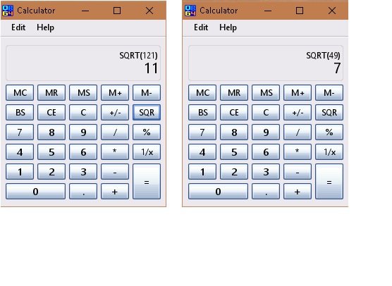 make 11*11 then press = and then SQR you get   SQRT(121)
