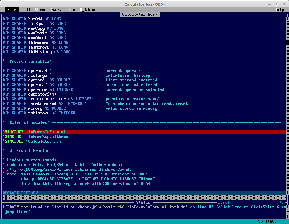 ps: I have tried to use the full path to the files and I still get the error. All libraries are in the right place and 'exist'. The 'InForm' folder is in the qb64 folder.