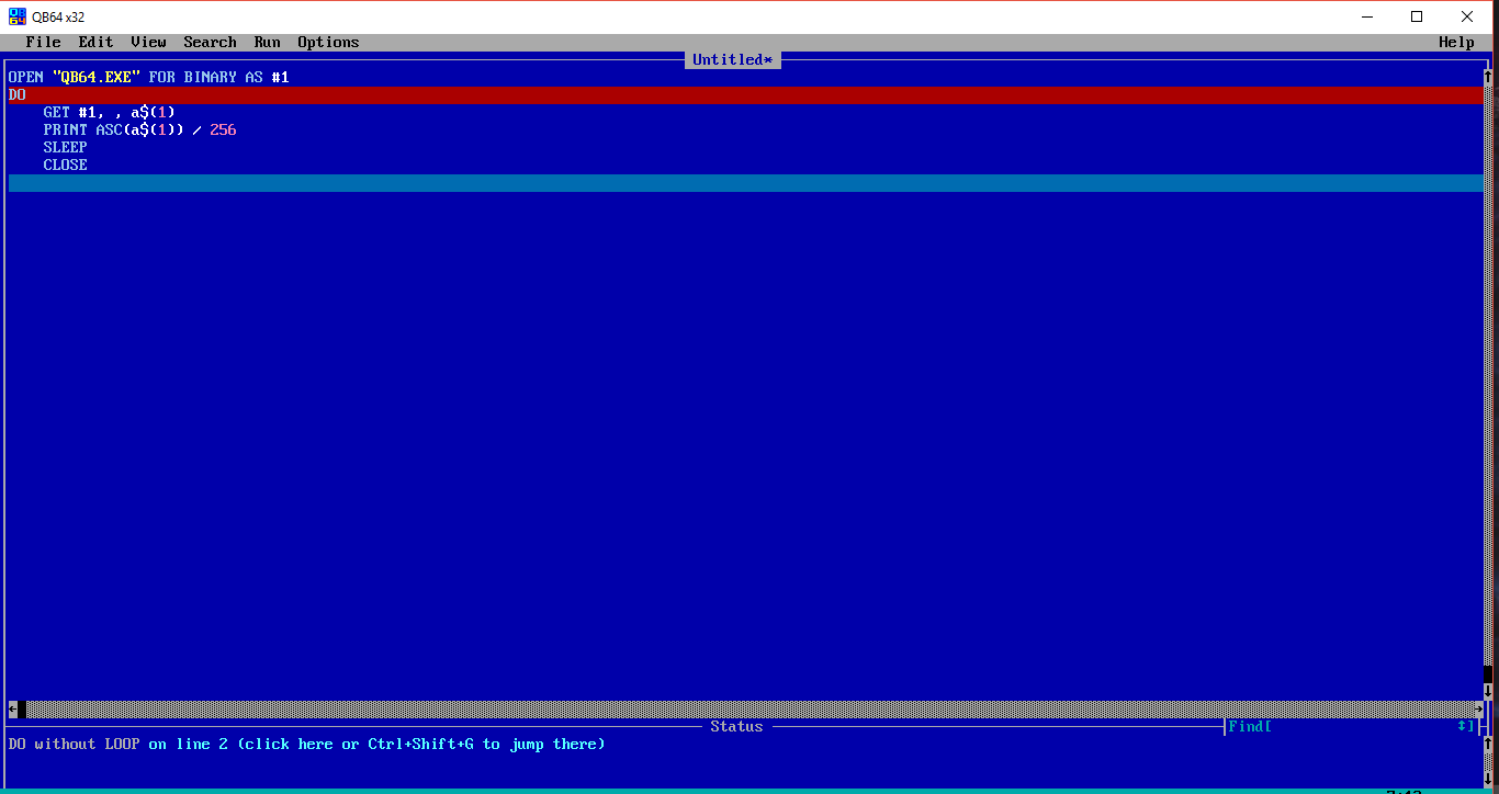 OPEN “QB64.EXE” FOR BINARY AS #1